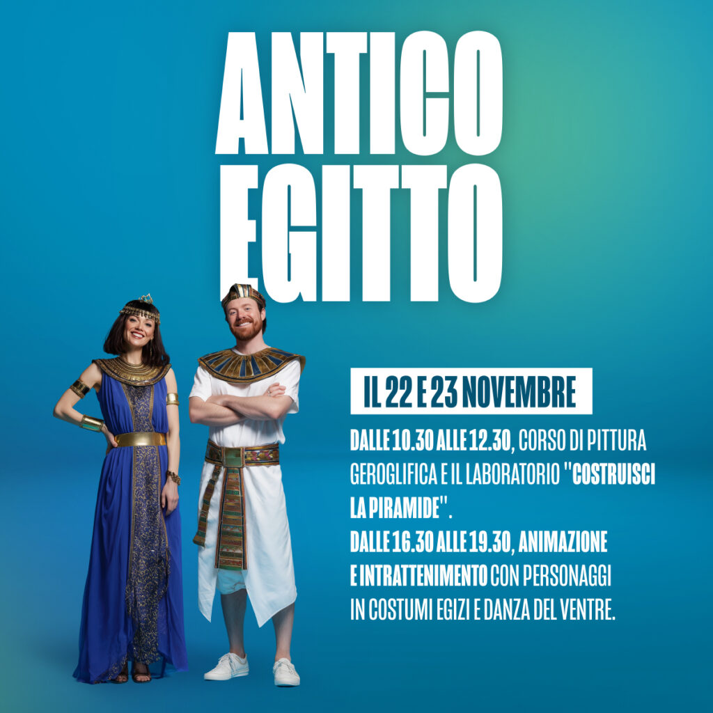 Il 22 e 23 novembre esploriamo insieme i misteri dell’Antico Egitto con tante attività per i tuoi bambini! 🐪✨ 🖌️ Dalle 10:30 alle 12:30 ▪️ Corso di pittura geroglifica ▪️ Laboratorio creativo “Costruisci la Piramide” 💃 Dalle 16:30 alle 19:30 ▪️ Animazione a tema con personaggi in costumi egizi ▪️ Spettacolo e intrattenimento con danza […]