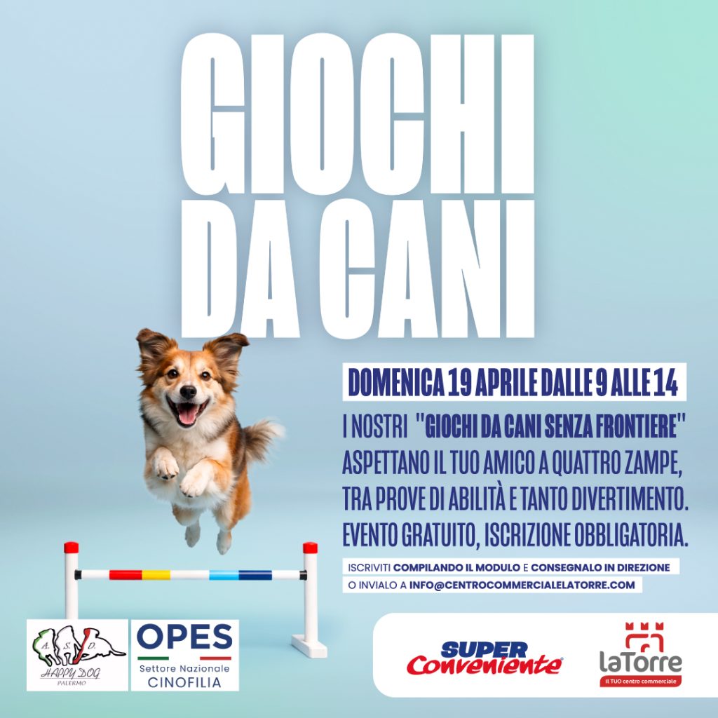 Domenica 19 aprile, dalle 9:00 alle 14:00, il Centro Commerciale La Torre ospita i “Giochi da Cani Senza Frontiere”, un evento speciale dedicato ai nostri amici a quattro zampe.